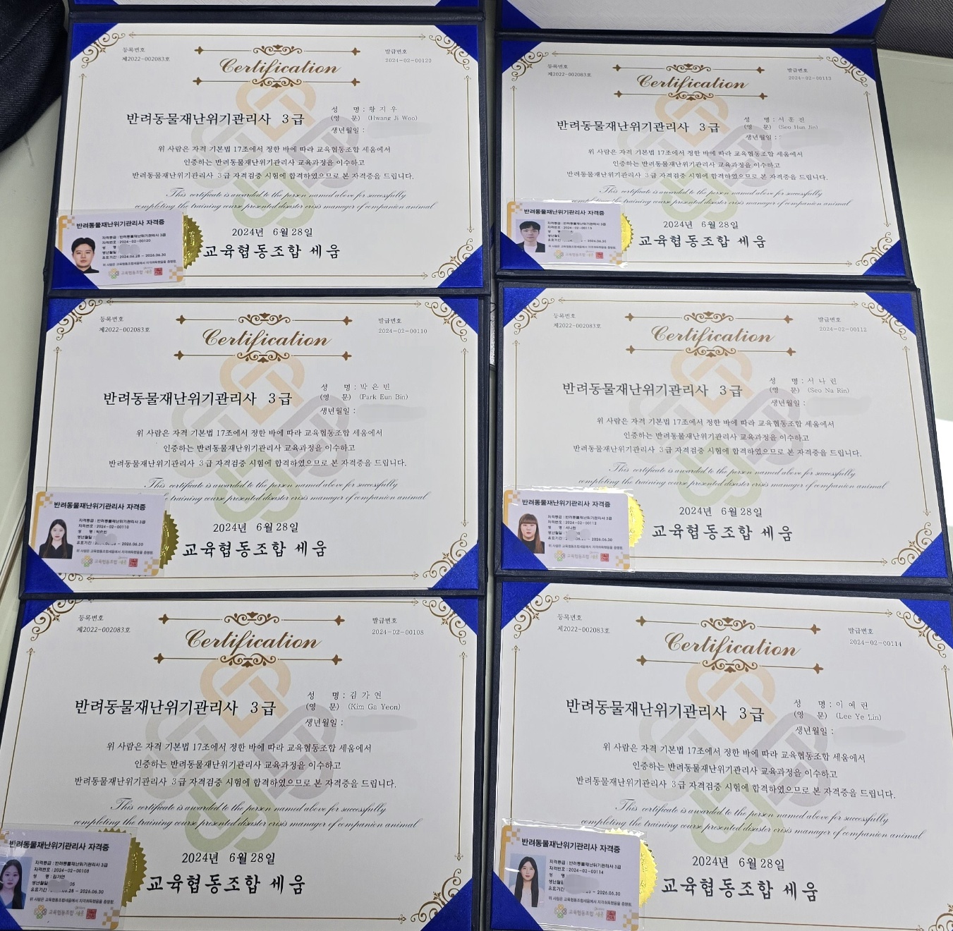 동물보건과 2학년 친구들이 " 반려동물재난위기관리사 3급 " 자격증을 취득했습니다 !